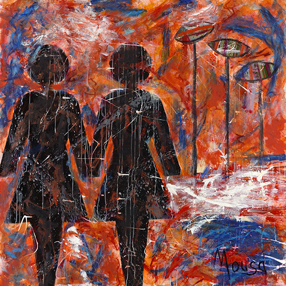 Using color in unexpected ways, Mousa lets intuition and affect guide his oeuvre. His work is always framed by hope for greater equality, no matter how naïve or impossible that might seem in the face of ever-challenging political and religious difference.