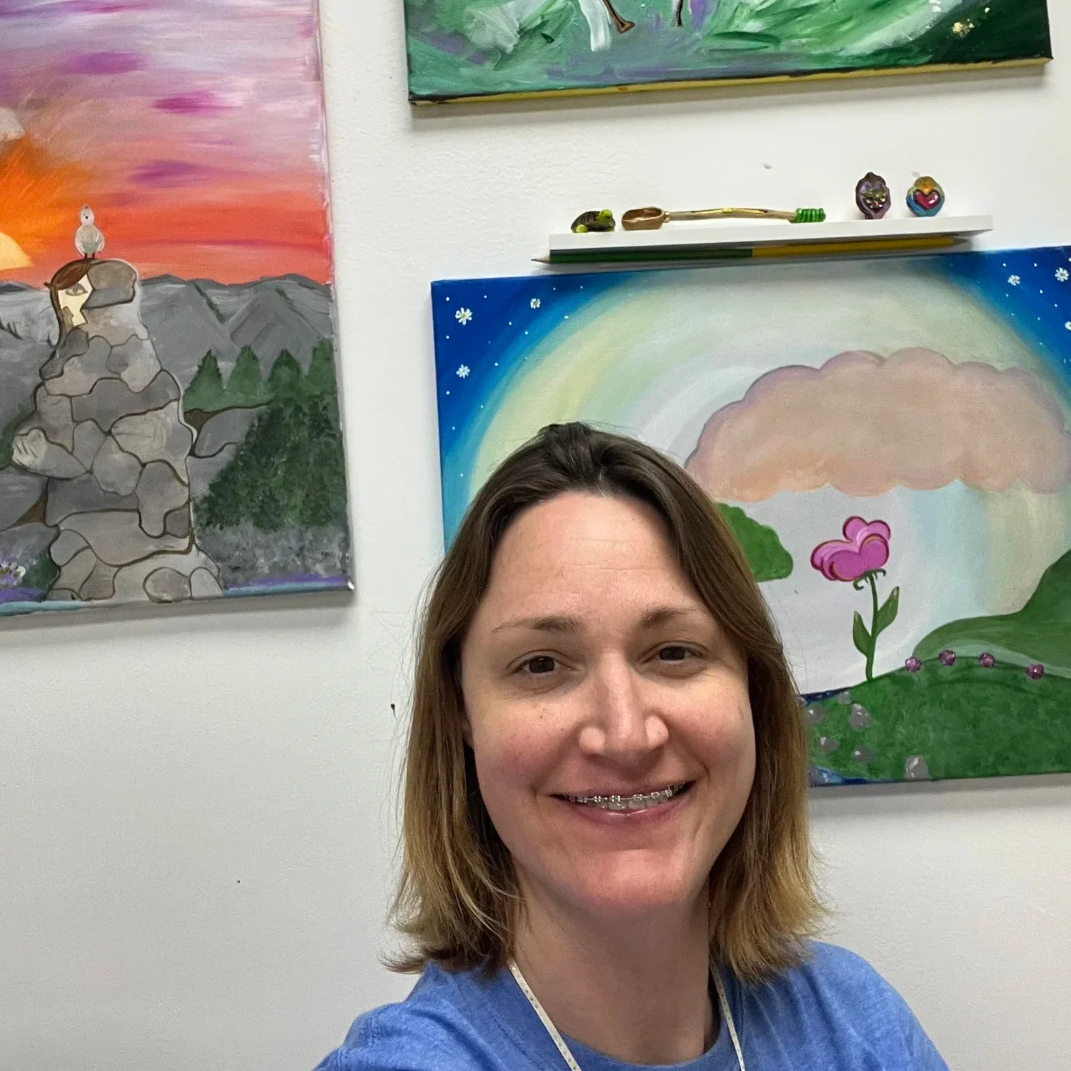 Drawing inspiration from personal experiences, each piece is an expression of love's power to win again and again and a reminder to never give up on yourself. With a strong attention to detail and lots of color, she pours herself into paintings on canvas, decorative baskets made from plastic bags, wooden pendants from walnut shells, and oven-baked clay figures.